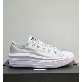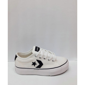 Tênis All Star FlatForm Couro Branco Com Pérolas
