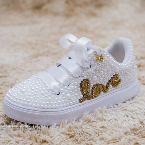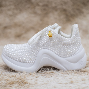 Lavagem: O tênis pode ser lavado com sabão neutro, utilizando uma escova suave para não danificar as pérolas