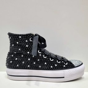 Tênis All Star Converse plataforma preto pérolas/cristais.